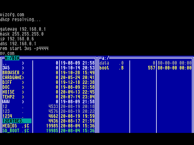 Функции командной строки реализует утилита cmd, которая автоматически запускается при запуске системы. Точнее, первая задача idle запускает term с параметрами cmd.com autoexec.bat. Это значит, что cmd выполнит указанный батник. Команды, прописанные там, выполняются по порядку. По умолчанию команды выполняются с ожиданием окончания, но если команда – это запуск программы, то перед ним можно поставить start – программа будет работать в фоновом режиме (только это не совместимо с концепцией наследования stdin и stdout – данные в очередях могут быть перемешаны).